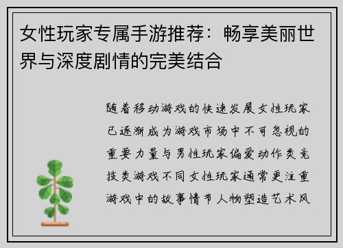 “ **“游戏内容很丰富,剧情和角色都很有深度。感觉开发团队真的很用心,虽然偶尔有些小bug,但整体体验还是非常满意的。”**”